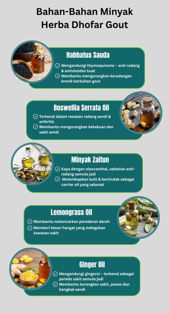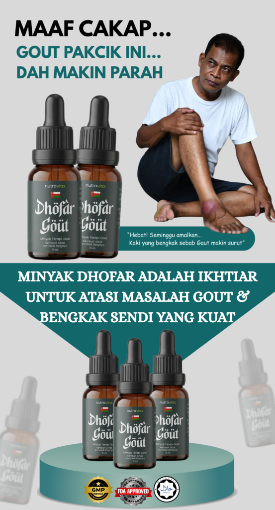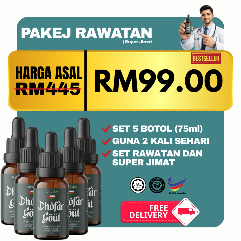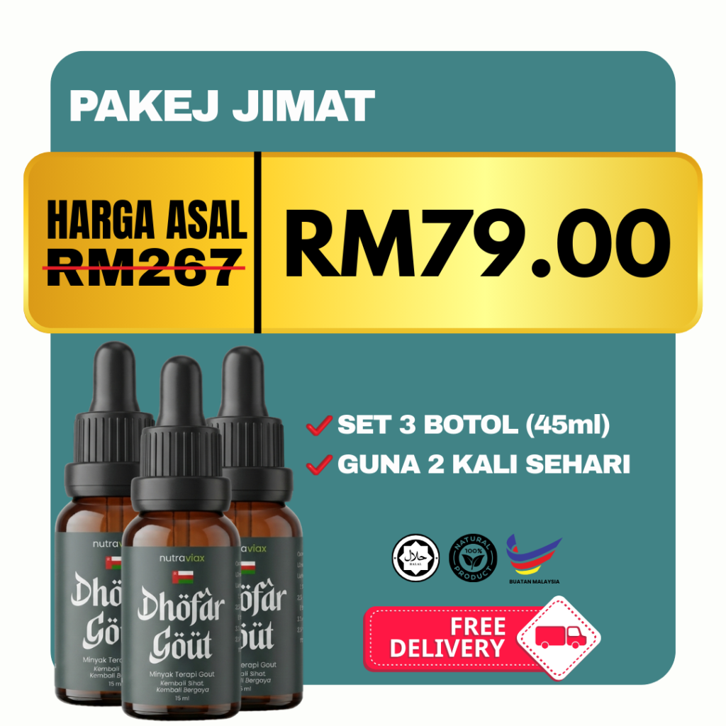 Minyak Herba Dhofar Gout hanya untuk kegunaan luaran sahaja.