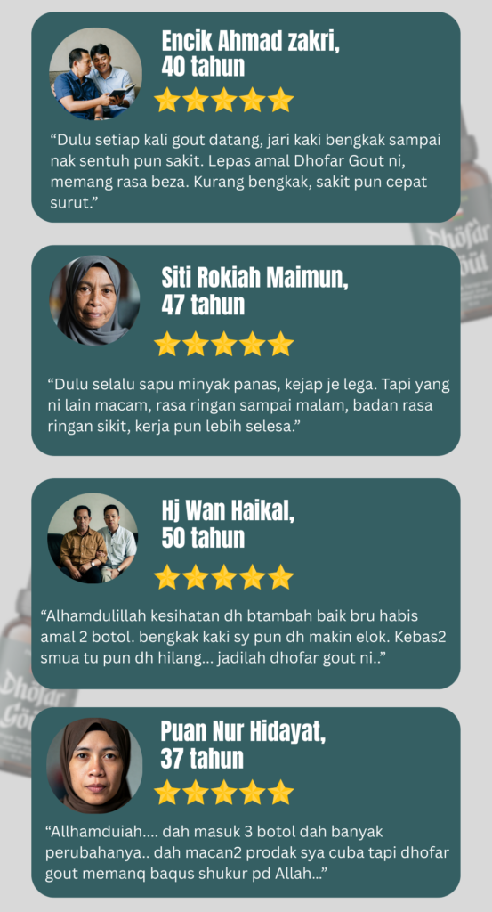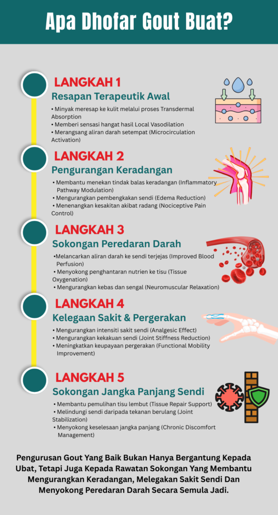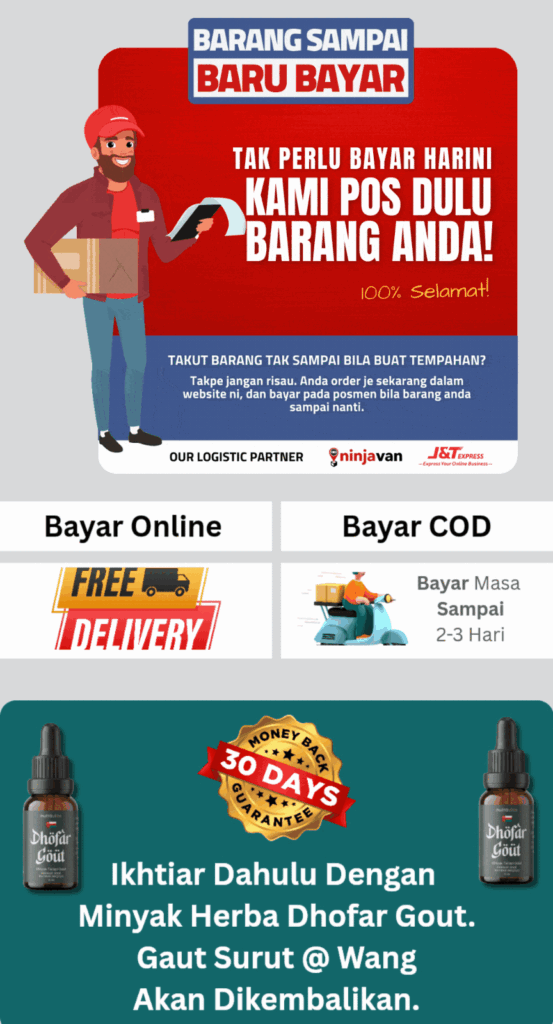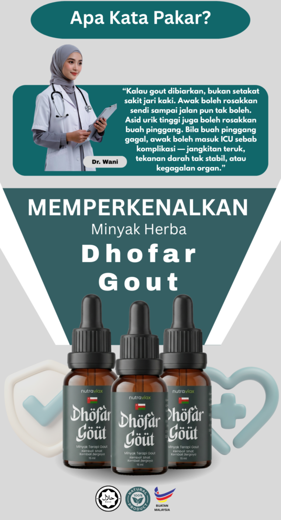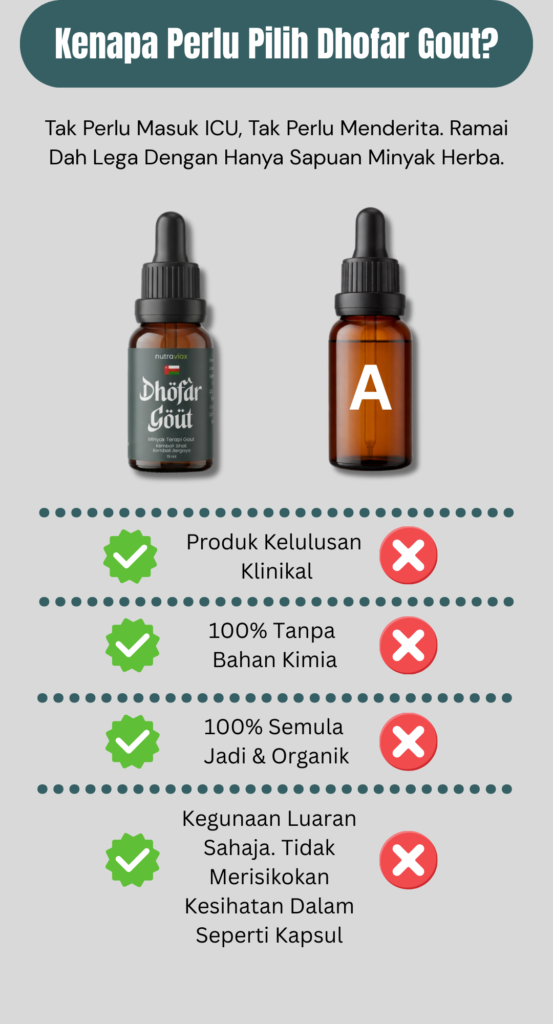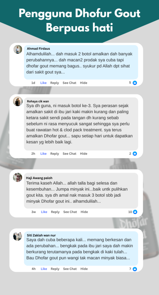 Minyak Herba Dhofar Gout hanya untuk kegunaan luaran sahaja.