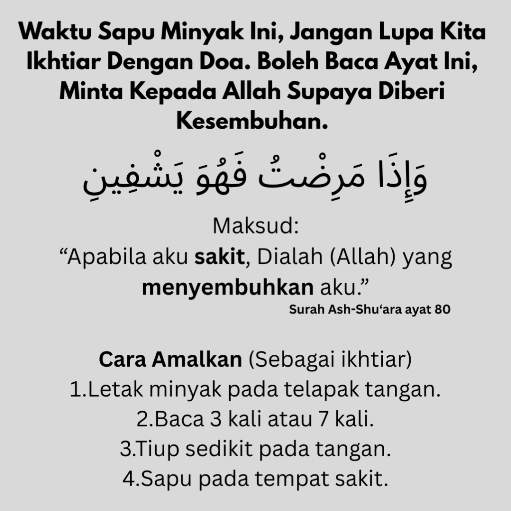 Produk ini hanya minyak sapuan herba dan tidak bertujuan untuk mendiagnosis, merawat atau mencegah sebarang penyakit